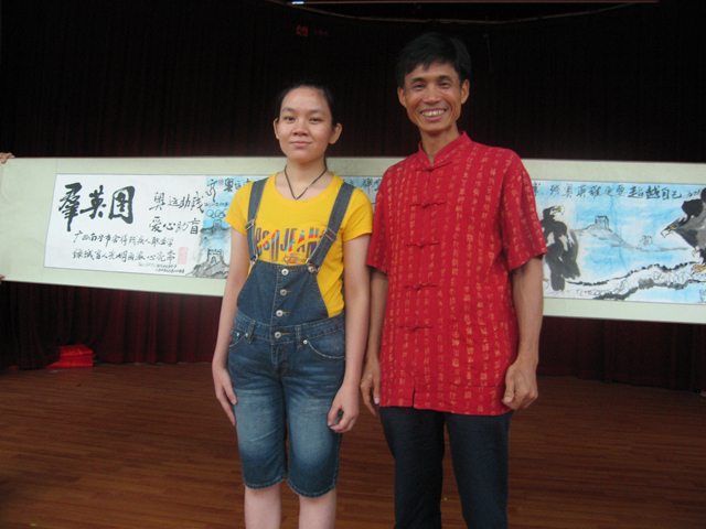 7月31日,在南宁市图书馆的多功能厅里,“绿城讲坛”迎来了一场名为“太阳的女儿,感恩的女儿”的特殊演讲:“我一直很幸运,我是孤儿,但并不孤独。家庭给了我温暖,学校给了我温暖,祖国给了我温暖。我是太阳的女儿!”——失聪少女画家曾毓珺在台上用手语饱含深情地“讲述”自己的人生经历。当幕后女声将她的手语一句句翻译出来时,现场观众无不为她的自强不息而感动,为她的孝顺懂事而动容。