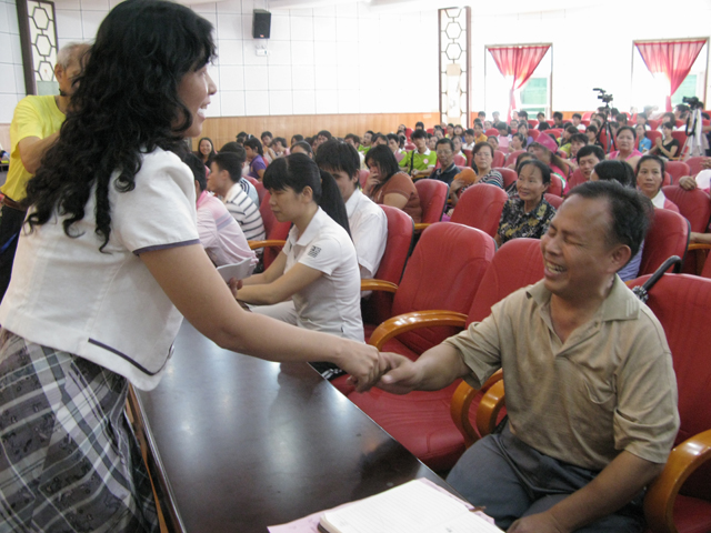 10月10日上午9点半,为迎接10月15日国际盲人节的到来,南宁市图书馆“绿城讲坛”与南宁市舍得残疾人职业学校联合主办了“点亮心灯”盲人联欢会。这次联欢会汇集了众多广西高校的在校学生,广西民族大学、广西大学行健文理学院、广西医科大学、广西师范学院以及南宁职业技术学院的青年志愿者们都参与了此次演出。此外,南宁市舍得残疾人职业学校的盲人朋友和黄埔桂花合唱团也参与其中,为观众带来了一场别开生面的精彩演出。