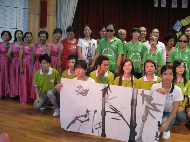 此次联欢会的高潮部分要数由南宁市舍得残疾人职业学校的卓思良先生表演的现场作画。卓思良先生在双眼失明的情况下只凭借双手对纸张的触摸、对笔触的运用、对比例的掌握,在几分钟之内就画出了一幅完整的翠竹图,赢得了现场观众热烈的掌声与喝彩。在现场,卓思良还表示盲人虽然看不见,但仍能活出自己的精彩,他们依靠自己的努力与社会的帮助,学会帮人按摩,也能自己画画写字,他还呼吁社会上能有更多的志愿者以及爱心人士来关注盲人。这次联欢会在南宁职业技术学院全体志愿者的一首深情的大合唱《相信爱》中落下帷幕。