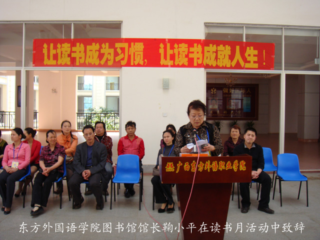 随着“书香绿城”读书月活动的深入开展,南宁市图书馆不仅在本馆举办了形式各异的主题讲座和专题展览,吸引了广大市民的热情参与,同时还携手东方外国语学院于4月12日把“绿城讲坛”这一文化品牌送进该学院,和那里的近千名师生共同分享了一堂特殊的课程——“性格与人生”专题公益讲座。