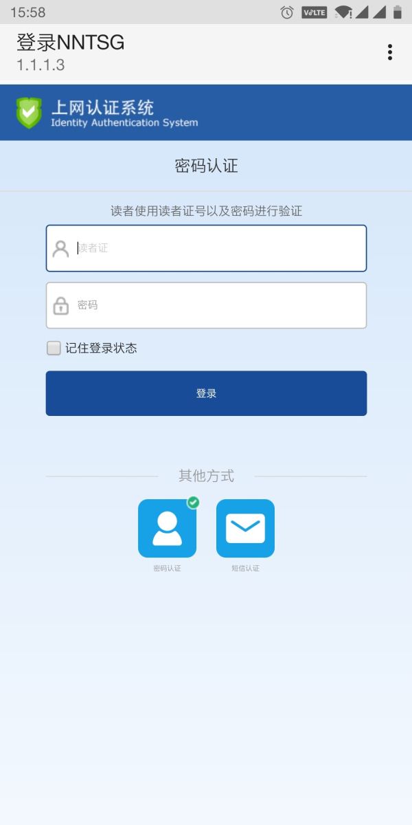 (1) 密码认证:输入读者证号和密码,点击登录即可上网;