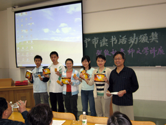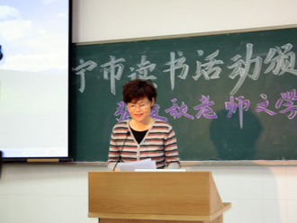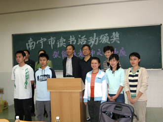 南宁市文化局常务副局长鲁利总结发言 张老师与获奖读者合影