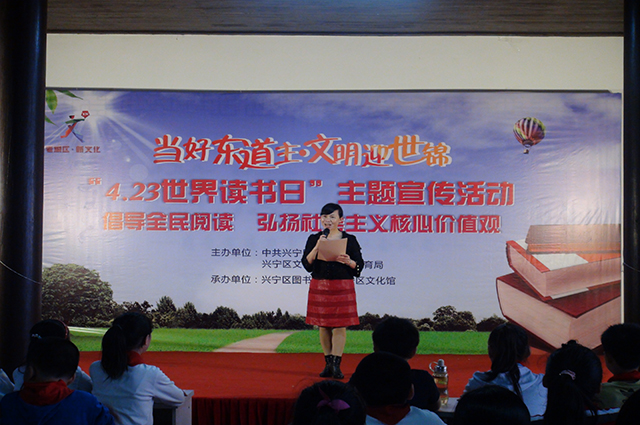 4月23日,兴宁区“4•23世界读书日”主题宣传活动在兴宁区图书馆隆重举行,活动不仅评比“读书之星”、发放读书倡议,还举办了精彩的文艺演出和读书演讲。