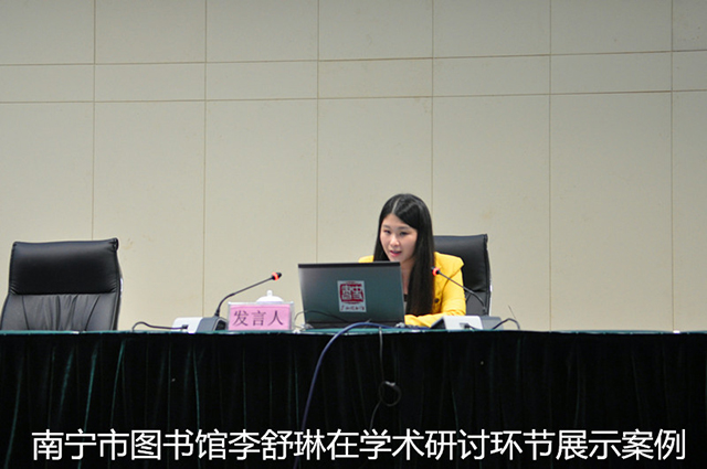 在“缔造图书馆的新服务、新体验”环节,桂林图书馆研究辅导部主任蒋丽介绍了该馆在文化志愿者工作方面的亮点;广西科技大学图书馆推广服务部主任刘伟勤用视频讲解了如何利用微书评进行阅读推广;南宁市图书馆辅导部副主任李舒琳向大家展示了微博、微信等新媒体在读者服务中的应用;广西师范大学图书馆图书馆文化与平台服务部王一真介绍了“真人图书馆”活动的策划与开展;柳州市图书馆少儿部主任曾杨声情并茂地讲述该馆少儿阅读推广品牌活动“双语悦读会”。