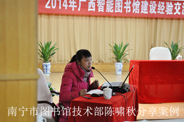 在案例分享与交流环节中,来自广西大学图书馆、广西民族大学图书馆、广西科技大学图书馆、桂林电子科技大学图书馆、桂林理工大学图书馆、桂林航天工业学院图书馆、广西职业技术学院图书馆等7所高校馆以及南宁市图书馆、南宁市少年儿童图书馆等2所公共馆的专家学者和馆员向与会代表分享了各馆在图书馆智能化、网络化、数字化建设中的经验和心得,展示了各自工作中的亮点、特色和方法。包括图书馆智能化自助服务设备、ATM智能书柜、EMID、RFID在图书馆中的应用、一卡通建设与管理,知识发现系统与服务以及数字图书馆推广工程等方面内容。还有来自北京、上海、深圳等地的图书馆行业相关企业进行了新产品发布及展示等。