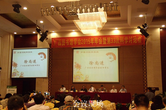 11月19日,广西图书馆学会2015年年会暨第33次科学讨论会在广西来宾市举行,来自全区公共、高校、科研系统图书馆及部分企业代表共二百多人参加了本次会议。南宁市图书馆学会理事、南宁市图书馆副馆长陆庆,南宁市图书馆学会秘书长、业务辅导部主任贺定龙、读者活动部主任全维民、技术部杨健龙同志随行参会。南宁市图书馆学会共11名会员参加会议。