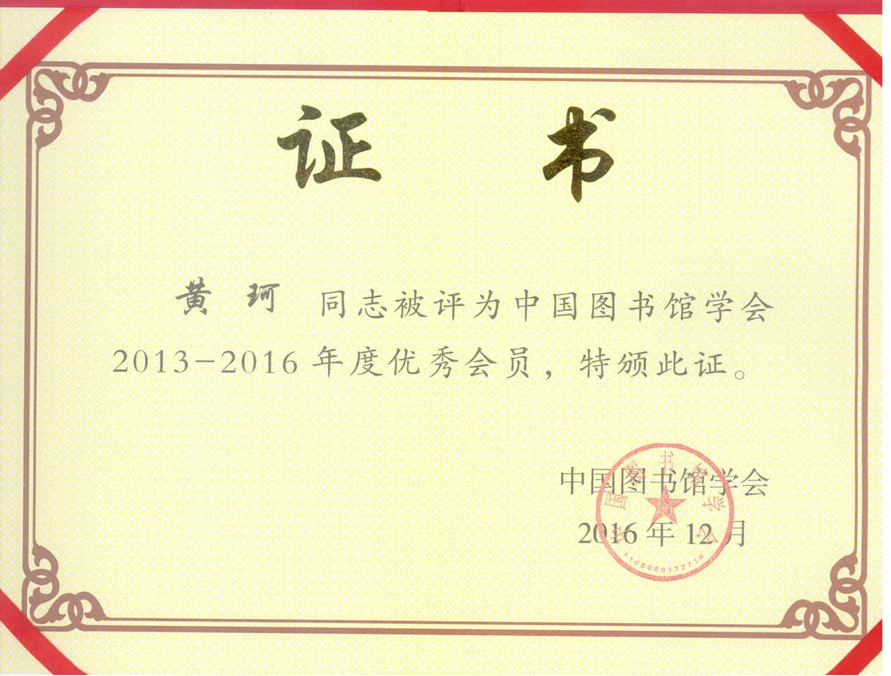 热烈庆祝我馆黄珂同志荣获中国图书馆学会2013-2016年度优秀会员。