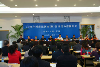 2006年西南地区市(州)图书馆协作网年会于11月13日至15日在美丽富饶的红河州哈尼族彝族自治州图书馆隆重举行,来自四川、云南、贵州、广西、重庆、陕西“四省一市一区”的六家市(州)级公共图书馆馆长及部分馆员参加了会议,南宁市图书馆学会派出五名代表出席此次盛会。