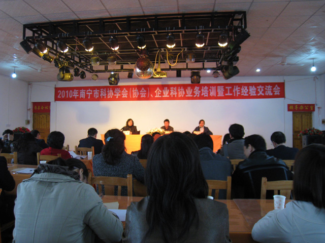 2010年南宁市科协学会(协会)、企业科协业务培训暨工作交流会于2010年12月14日上午,在市郊美丽的侯哥花果山山庄举行。参加此次培训暨工作交流会的有来自