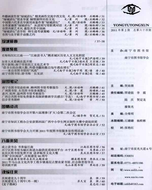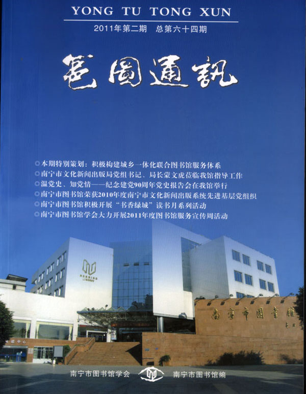 编者按:2011年2月,文化部、财政部联合下发了《关于推进全国美术馆、公共图书馆、文化馆(站)免费开放工作的意见》,是进一步提高政府为全社会提供公共文化服务水平的重要举措,是实现和保障人民群众基本文化权益的积极行动。作为南宁市公共文化服务单位,南宁市图书馆一直积极开展相关问题的研究,并采取了一些措施:一是由南宁市图书馆学会牵头开展《南宁市公共图书馆服务网络建设》的课题研究,对国内外开展总分馆建设的情况进行了充分的研究分析,并结合了南宁市-县(区)-乡镇(街道)-村(社区)四级图书馆发展现状,提出构建公共图书馆服务网络具体设想,该项目作为2010年南宁市社科联资助的项目已提交市社科联,获得专家好评与肯定。二是多方调研,研究制定《南宁市图书馆城乡一体化联合图书馆项目》项目可行性分析报告,并开展可用于图书馆集群管理的业务管理软件的更换准备工作,得到上级主管部门南宁市文化新闻出版局的高度重视与支持。