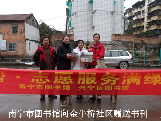 。 1月10日上午,西乡塘区图书馆参加了由自治区科学技术厅、南宁市人民政府主办,西乡塘区人民政府、南宁市科学技术局承办的2011年广西科技活动周之“百项农业科技成果,百家企业,百名专家科技惠农服务”活动。此活动在西乡塘区金陵镇举行。