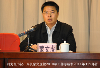 蒙文虎局长以新突破、新魅力、新享受、新局面等“十个新”总结了2010年的工作成绩;认真传达了市委常委 、宣传部部长 、副市长吕洁在全市宣传文化工作会议上关于文化新闻出版工作的讲话精神,并全面部署2011年全市文化新闻出版工作。他说,2011年是中国共产党成立90周年,是实施“十二五”规划的开局之年,是我市深入开展“三个年”主题活动和“五场攻坚战”的重要一年,全市文化新闻出版工作要紧紧围绕科学发展的主题,围绕科学发展和加快转变发展方式这条主线,围绕全市工作大局,制定和落实“十二五”发展规划,加快文化体制改革创新,加快构建公共文化服务体系,不断满足新形势下人民群众多方面、多样化、