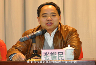 随后,市委宣传部张耀民副部长发表了热情洋溢的讲话。他首先肯定了南宁市文化新闻出版局在2010年取得的喜人成绩,客观指出了目前存在的问题,并对新一年的工作提出了殷切希望。