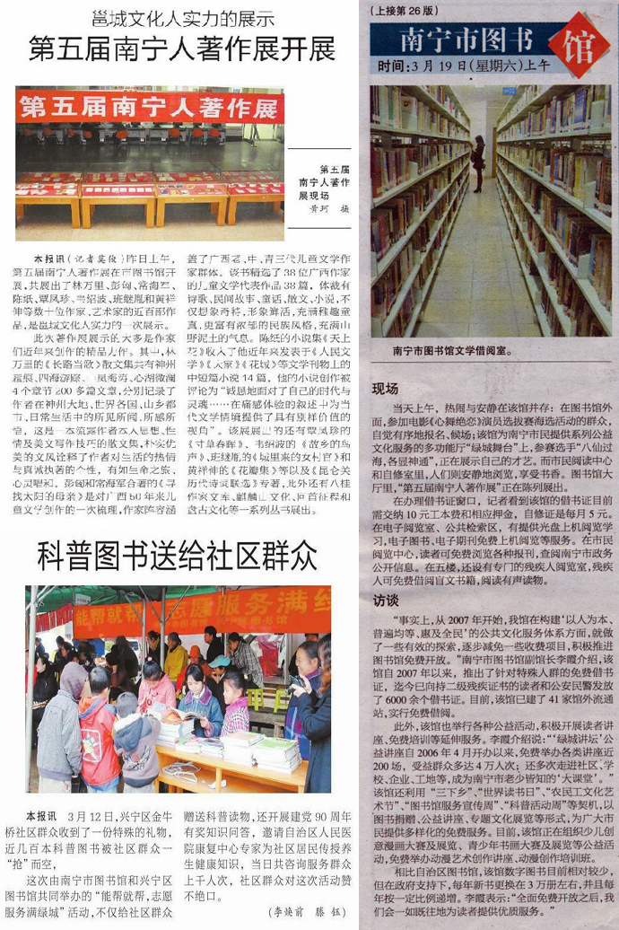 2011年3月10日下午,南宁市文化新闻出版局在南宁市图书馆多功能厅召开2011年南宁市文化新闻出版工作会议。到会的有各县区