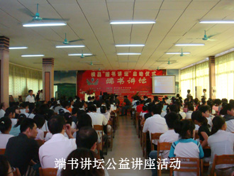教育科技、文化艺术、经济与生活、卫生与健康为主题,采用固定和流动讲座相结合,传统形式与科技手段相结合,专家探讨与现场交流相结合,科学性和趣味性相结合的方式进行,让人民群众共享资源,共同收获。2009年2月份,我们“端书讲坛”走进校门,举办“励志点亮人生,学习改变命运”为主题读书讲座,组织10位在校优秀大学生到横县二高,横州三中,百合中学,校椅中学进行巡回演讲,与在校高三毕业生就怎样备战高考开展面对面学习交流,激发广大毕业生的学习热情,受到学校、老师、学生的欢迎。2009年12月,自治区人民政府原副主席、广东省广西商会会长雷宇先生回到横县,走进端书讲坛,为我县领导干部作了“领导干部时代前沿知识”专题讲座。雷宇先生在讲座中就领导干部怎么去做官、怎么去做事、怎么去做人作了精彩的演讲,勉励领导干部要多读书、善思考、务实事、重实际、讲方法、正言行。雷宇先生的精彩演讲,到场的全县各级领导干部深受鼓舞,激励了工作热情,获益匪浅。2010年10月,我们邀请了广西妇女干部学校高级讲师周健到我县县城各小学作了主题为“家庭教育与学校教育的区别”的巡回讲座,讲座理论结合具体实例,声情并茂。使参加讲座的每位家长对孩子的成长教育受到启发,了解到家庭教育的重要性,使学校老师也有所感悟,形成了社会、学校、家长共同关注未成年人教育的氛围。到目前,我馆己举办了7期,听众达6000多人次。期间,我馆还协助县委宣传部、县文明办、团县委等单位先后举办了“横县青少年爱国主义教育活动、讲故事”演讲比赛;“交通安全、文明出行”知识竞赛。从2008年至今,我馆举办“端书讲坛”公益性讲座达19期,听众达一万多人次。