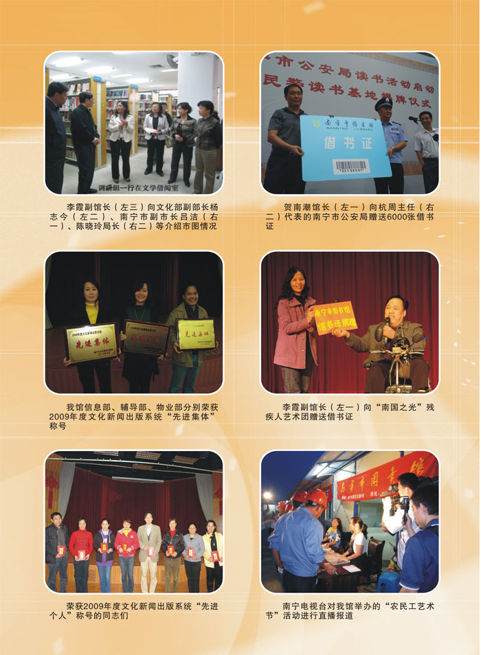 南宁市图书馆在2009年全国公共图书馆评估定级工作中获“一级图书馆”的称号,这是我馆继