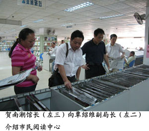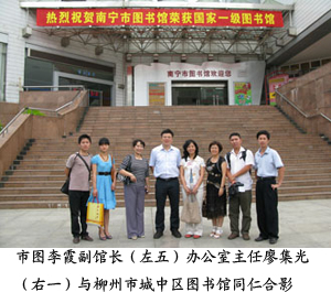 市图书馆馆长贺南潮和南宁市少年儿童图书馆书记覃建值的带领下,两馆部分部门主任和业务骨干