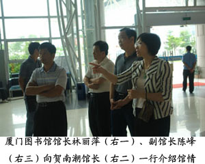 考察团得到了热情的接待。在厦门市少儿图书馆,从开放时间的设置,到书架桌椅的设计,从借还书的渠道,到读者心理咨询,以及丰富多彩的读者活动,无不体现了非常有特色的适合少年儿童读者的阅读需要。在厦门市图书馆,大家充分领略了现代化的管理理念。在林丽萍馆长和陈峰副馆长的陪同下,考察团参观了社科、自科、廉政建设文献借阅区、社科报刊借阅区、视障人士借阅区 、IT体验区、地方文献阅览区、闽台关系文献阅览区、政府信息阅览区、外文文献借阅区、少儿