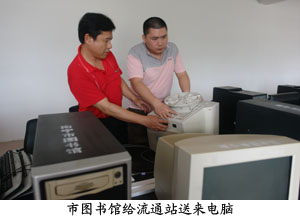 为完善流通站的建设,南宁市图书馆于4月28日为该站送去一千五百册图书及配套书架,并对该站工作人员进行业务指导。5月5日上午,南宁市图书馆工作人员在贺南潮馆长的带领下,再次来到横县百合镇文化体育中心,为该站正式挂牌,并送去六台电脑,供读者检索查阅,共享网络资源。