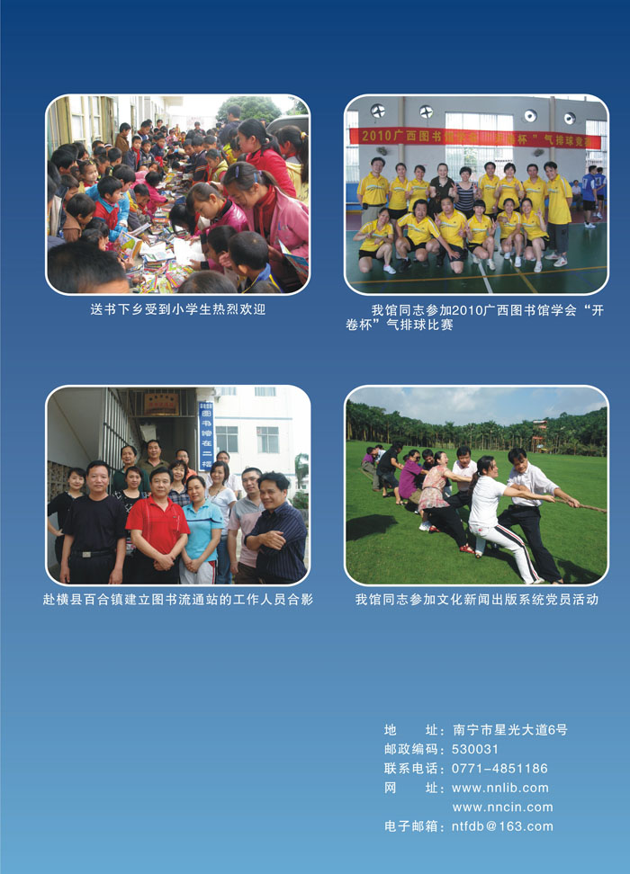 消息“邕图资讯”,有我们引以自豪的名片“绿城讲坛”,有我们对图书馆发展的深刻思考“邕图
