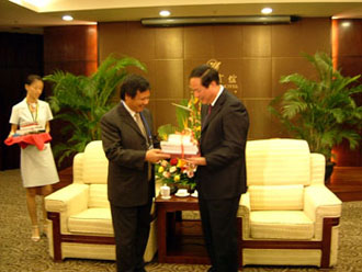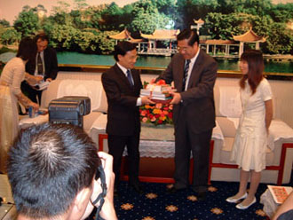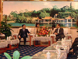 10月30日下午和10月31日上午,南宁市市长林国强、市人大常委会主任谢寿堂、市政协主席黄家仁、市委常委、纪委书记秦敬德、市人大常委会副主任陈瑞深、邓其新、副市长赵宏声、市政协副主席张国环等分别在市政府会客室、邕江宾馆会见了越南海防市代表团、越南下龙市代表团、泰国孔敬市代表团。市文化局、外事办、教育局、广电局、旅游局等领导会见时在座。双方进行了亲切友好的会谈,同时就加强旅游、教育、文化、体育等方面的交流、合作和发展作了进一步的研讨和磋商。双方一致认为本次洽谈会是中越、中泰双方了解彼此的一个重要渠道和机会,是促进中越、中泰文化交流、扩大互利合作的桥梁,有利于文化界充分利用中国—东盟博览会的平台,把握中国—东盟文化建设的新机遇。双方相信,通过共同的努力,将在文化、教育等方面有一个宽阔的合作空间。双方表示要进一步加强友好合作。在会上,林国强市长、谢寿堂主任等市领导与三个城市代表团互赠了极具两地风土人情、反映本地历史、经济概况、社会科学、流行文化和名家名作的文献资料。南宁市图书馆莫萍、丰玉明分别参加了会见。