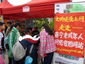 为了达到活动“传递科学知识、宏扬科学精神、倡导文明健康的生活方式、提高全民族的科学文化素质,全面建设小康社会,构建和谐南宁,建设创新型城市”的目的。南宁市文化局给这次活动带来南宁市文化系统的文化信息宣传册,南宁市图书馆也在刘斌副馆长的带领下,向广大市民和青少年学生推广南宁市委宣传部等单位主办、南宁市图书馆等单位承办的“南宁青少年网”,该网站已于12月30日正式启动,是一个集科学性、知识性、互动性、娱乐性为一体的绿色网络,是广大未成年人和学校、家庭、社会信息沟通的平台。在科普广场活动的启动仪式上,我馆的工作人员带上电脑,现场为大家演示上网的程序,展示网部内容,引起在场青少年学生的极大兴趣。