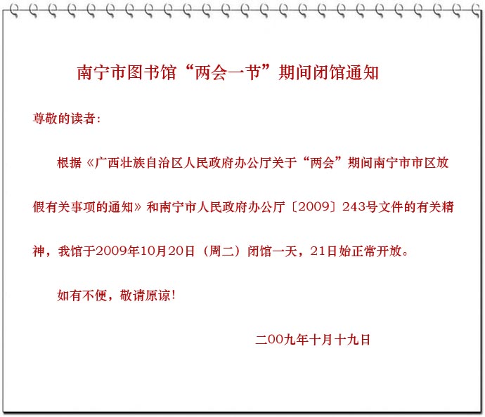 南宁市图书馆“两会一节”期间闭馆通知