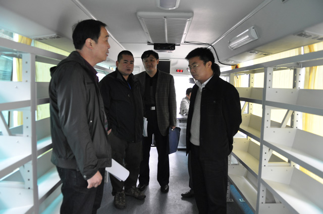 当天下午,局领导一行首先视察了2010年为民办实事项目之一——汽车图书馆。汽车图书馆一经投入使用,就为社区、部队的读者提供了多次免费借阅服务。局领导一行登上图书车,详细了解了该车的实际用途和运作情况,并希望我们充分利用好汽车图书馆,为更广大的读者提供更便捷、更优质的服务。