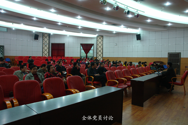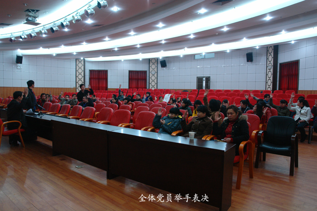 贺南潮书记组织全体党员讨论是否通过石璐璐、杨彤荔两名同志为入党积极分子。全体党员以举手表决的方式一致通过。