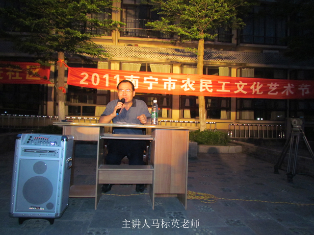 为深入贯彻落实党的十七大精神,加强和谐社会建设,丰富进城务工人员的精神文化生活,根据南宁市文化新闻出版局“‘2011年南宁市农民工文化艺术节’活动方案”及“2011年全国科技活动周南宁市活动方案”的有关安排,5月20日下午,由南宁市图书馆、江南区图书馆、南宁市邮政局主办,南宁市房产业开发总公司、江南区住房和城乡建设局、江南区江南街道党工委、办事处和江南区二桥西社区协办,在南宁市富宁新兴苑社区共同举办了一场以“关爱农民工?知识给温暖”为主题的系列活动。