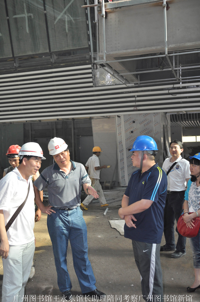 在参观完广州图书馆后,馆长助理王永东还亲自陪同我们考察了位于珠江新城的建设中的广州图书馆新馆。新馆的建筑构思以“美丽书籍”为概念,以此组织空间形体。建成后的新馆建筑平面和立面均与汉字“之”字形契合,在馆外无论从哪个角度看,都会产生一种“书籍成堆”的感觉。据悉,该设计是从参赛作品13套方案选取出来的,充分体现“以人为本”的设计理念和时尚现代的都市风格,营造出人性化的活动空间。尽管目前内部装修还未完成,但其充满人文气息的秀美外观已成为珠江边一个亮丽的文化标志。