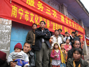 当天尽管天空不作美,毛毛雨一直下个不停,但活动现场依然挤满的热情的当地群众。上午10点,市委常委、宣传部部长、副市长肖莺子宣布活动启动。只见她话音刚落:各各“摊位”前立即被赶来的村民围得水泄不通,我馆的“摊位”也不例外,农民伯伯和阿姨们抢着阅览我们带去的最新种植﹑养殖技术等资料.有位阿伯气喘吁吁挤到我们摊位前询问有没有科学养猪这方面的资料,当我们的工作人员拿出这方面的资料送给他时,阿伯连声说:谢谢!谢谢!等明年我要是科学养猪挣了钱一定请你们到我家做客。不到12点我们带去的200册科技种植﹑养殖的期刊、200多份“农业小百科”,被“求知若渴”的村民们一“抢”而空,组织的100多道“广西知多少”知识竞猜题也都“花落有家”。