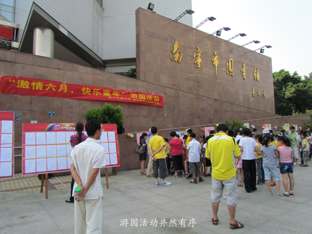 5月28日下午,南宁市图书馆门前广场热闹非凡,400多名小朋友在老师和家长的带领下,参加了由南宁市图书馆与金太阳教育培训学校联合主办的游园活动,迎接快乐的“六一”儿童节。