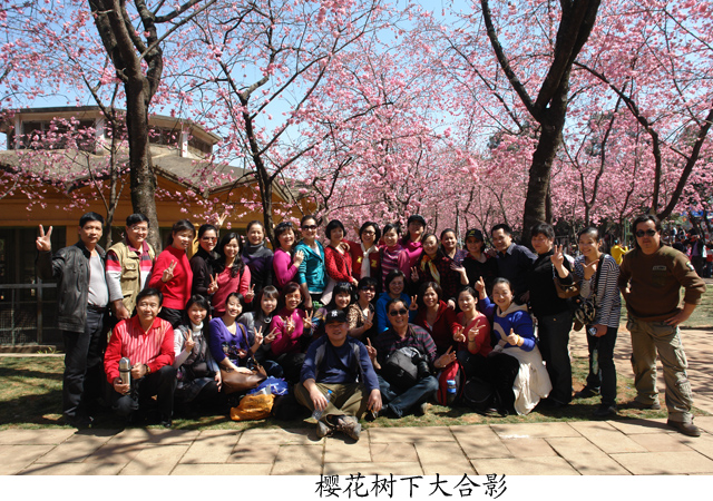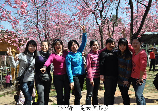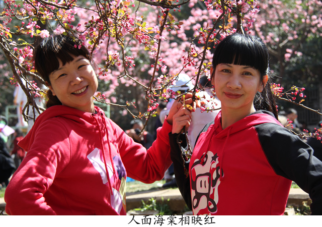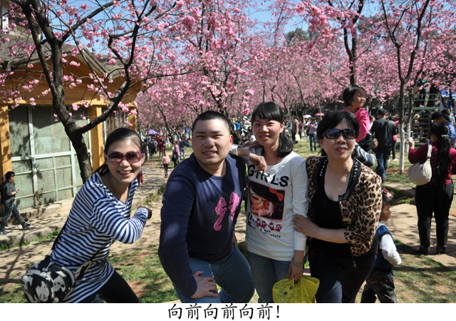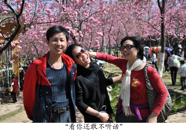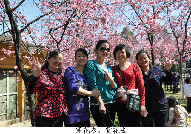 26日上午有半天自由活动的时间,同志们纷纷结伴出行,或逛街吃特色小吃,或逛花鸟市场,或街头漫步欣赏昆明四季如春的美景……说到赏景,"圆通花潮"是昆明胜景之一,当日下午,我们就来到了圆通山——数千株云南樱花、日本樱花和垂丝海棠竞相开放,构成一片上万平方米的花海 ,繁花似锦、绚丽多姿、红白交映、赏心悦目,粉色花朵一串串竞相怒放,犹如一串串铃铛悬于枝头,随风摇曳,充满了诗情画意。