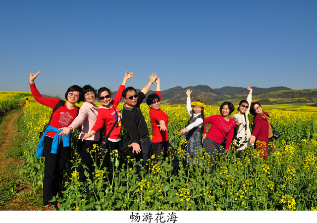24日晚,同志们分两批登上了开往罗平的火车,25日早上在罗平集结。罗平是云南省重点旅游景区,民族风情古朴浓郁,自然风光秀丽迷人。尤其是每年春季,盛开在罗平坝子里、喀斯特峰丛中的60万亩油菜花,被称为“世界最大的自然天成花园”。盛放之季,金黄无边,深入其中,花人合一,让游人如痴如醉,流连忘返。