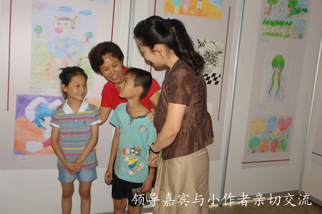 2011年6月12日上午,自治区妇儿工委办公室主任班乐英同志,南宁市妇联党组书记、主席,市妇儿工委副主任陈尧同志到南宁市图书馆观看了2011年南宁市青少年书画作品展,并与书画作者亲切交谈,鼓励少年儿童要继续努力学习,创作更多更好的作品,通过艺术的熏陶,把自己培养成为对国家、对人民有用之才。