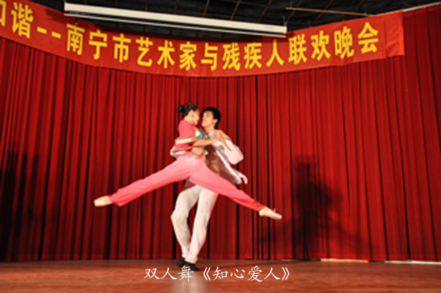 当天的联欢会请来了广西众多优秀的艺术家,曾获中国西部民歌演唱大赛专业组金奖的著名歌手陈春燕献上优美动感的歌曲《让我们舞起来》,甜美的嗓音一开便征服了全场观众,许多残疾人都慕名拥到台下与她合影。曾冲进CCTV青年歌手电视大奖赛总决赛并获优秀奖的廖鸿飞送上一曲《山歌唱出好兆头》,他虽带病上台却仍为观众献上了高水平的演出。广西优秀青年歌手袁泉一曲浑厚的《咱老百姓》唱出了全场观众的心声。南宁市舞蹈家协会的演员也送上婀娜多姿、极具风情的《肚皮舞》及现代舞《知心爱人》,各种高难度的抛举、旋转动作博得现场观众的热烈欢呼和掌声。