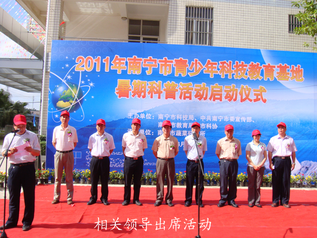 2011年6月20日上午,2011年南宁市青少年科技教育基地暑期科普活动启动仪式在在南宁市蔬菜研究所安吉试验基地举行,南宁市图书馆李霞副馆长、活动部黄珂副主任和辅导部张艳红同志应邀参加了启动仪式,并参观了占地面积100多亩的试验基地。李霞副馆长表示,暑假期间一定要充分发挥本馆科技教育基地的社会作用,为绿城青少年举办一系列积极有意义的科技活动。