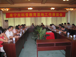 2008年10月28日,南宁市科普教育基地座谈会在广西药用植物园召开,南宁市十几家省、市级科普教育基地的负责人参加座谈会。市科协黄涛副主席亲自参加了座谈会,座谈会由南宁市科协科普部部长黄旭新主持。座谈会上,各科普基地代表畅所欲言,就如何实现科普资源的共建共享,充分发挥科普教育基地的作用,努力提高全民科学素质方面的工作介绍了各自的主要做法,座谈上,大家还共同探讨了以项目形式加强科协与基地、基地与基地间合作的途径和方法。我馆李霞副馆长及活动部全维明主任也应邀参加。