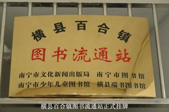2010年5月5日上午,南宁市图书馆的十余名工作人员在贺南潮馆长的带领下,再次来到横县百合镇文化体育中心,为市图书馆横县百合镇图书流通站正式挂牌。