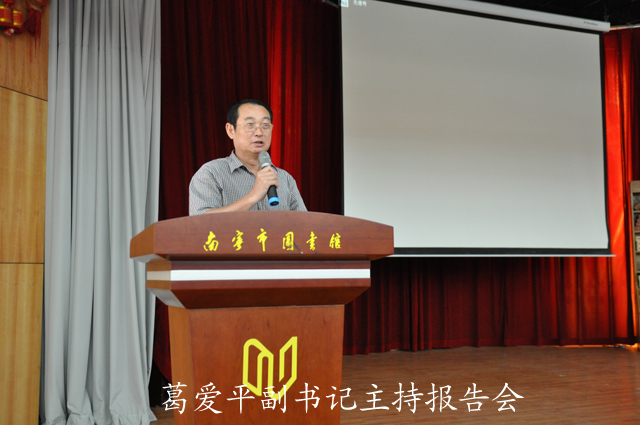 为纪念中国共产党建党90周年,2011年6月22日下午,南宁市文化新闻出版局机关党委组织全体党员干部在南宁市图书馆多功能厅召开了“纪念建党90周年党史报告会”。南宁市文化新闻出版局机关党委副书记葛爱平主持了报告会,局领导、全体党员、包括预备党员和入党积极分子在内的200多位听众认真聆听了由李庄博士所作的党史报告。