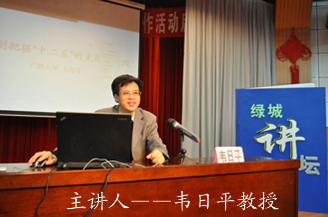 韦教授首先从“十一五”我国取得的伟大成绩开始谈起,深入浅出的解析了“十二五”规划中我国应该把握的主题和主线:从“以经济建设为中心”到以“科学发展为主题”,以加快转变经济发展方式为主线,更加注重以人为本,更加注重全面协调可持续发展,更加注重统筹兼顾,更加注重保障和改善民生,促进社会公平正义。同时,为结合南宁市文化新闻出版系统的发展实际,韦教授还从《厚黑学》流行的反思、文化与幸福的指数(重庆市的启示)、“能帮就帮、敢做善成”的南宁精神等几个实例来解析他对“十二五”规划中关于文化大发展大繁荣的思考。