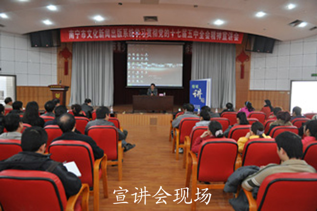 2010年12月28日上午,为深入学习贯彻党的十七届五中全会精神,南宁市图书馆党支部组织全体党员干部积极参加由南宁市文化新闻出版局召开的题为“深刻把握‘十二五’规划的主题、主线”的宣讲会, 大会邀请了韦日平教授进行宣讲。