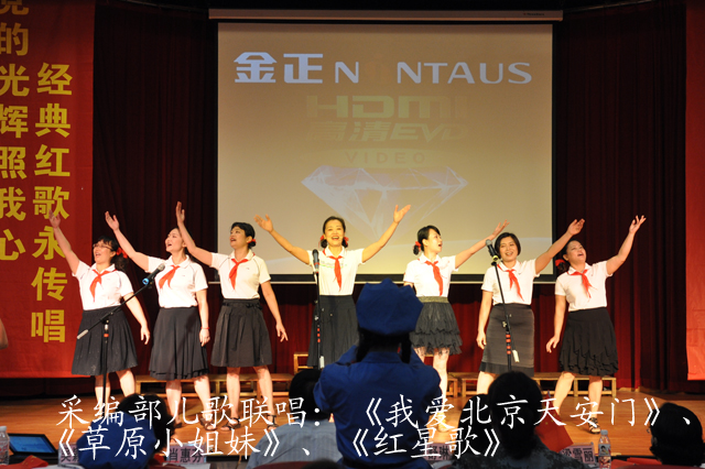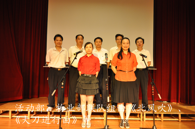 正式的比赛分为六个参赛队,首先登场的是外借部,女同志们一袭红装黑裙、动作整齐划一,唱响了《娘子军连歌》、《没有共产党就没有新中国》,诗朗诵与合唱的配合堪称完美。紧接着活动部、物业部联队为大家献上了精心串联的组曲:《北风吹》、《大刀进行曲》、《中国、中国、鲜红的太阳永不落》,从旧社会的苦难唱到新时代的辉煌,让观众回顾了90年来中国共产党走过的光辉足迹。信息部、技术部联队运用队员英姿飒爽的照片作为投影背景,演唱了《我爱祖国的蓝天》、《洗衣歌》,悠扬的歌声让观众仿佛置身祖国的蓝天。期刊部队员身着迷彩装登场,以领唱与合唱相结合的方式演唱了《英雄赞歌》、《军民大生产》。采编部的女同胞们身穿白衬衫,系上红领巾,一曲儿歌联唱:《我爱北京天安门》、《草原小姐妹》、《红星歌》让大家重拾童年记忆,该创意大获好评。最后上场的是由馆领导、办公室、辅导部、财务部组成的“六楼歌舞团”——办公室 、辅导部联队给大家献上了精彩绝伦的组曲:《没有共产党就没有新中国》、《红军不怕远征难》。他们身着红军装、手持刀枪道具,以精心的舞蹈编排、跌宕的剧情变化、独唱与合唱的完美结合掀起了整场比赛的高潮。