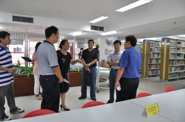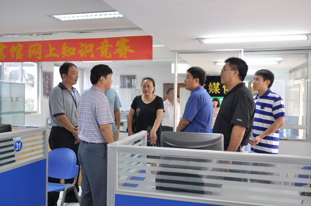 2011年7月8日下午,国家文化部社会文化司文化馆处处长白雪华、文化部办公厅办公室副调研员郭明涛、文化部人事司工资与调配处李薇、文化部人事司专家与奖惩处杨拯国等一行6人在广西文化厅社文处处长黄燕熙、南宁市文化新闻出版局杨伟农副局长陪同下莅临南宁市图书馆视察工作。考察组一行实地考察了我馆市民阅读中心、文学借阅室、地方文献阅览室、电子阅览室、残疾人阅览室等开放窗口及我馆负责维护管理的南宁文化信息网的运作情况。贺南潮馆长向考察组详细介绍了我馆的馆藏、借阅情况、服务特色、取得成绩等情况,通报了南宁市中心图书馆已正式立项的好消