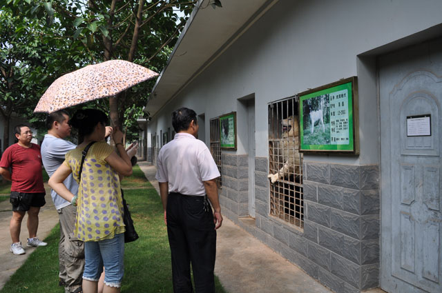 狗一直都是人类最忠实的朋友。而警犬不但是人类生活的朋友,还是部队执行特殊任务的“好帮手”, 城市生活的“安全卫士”。在警犬训练队刘春生队长、侯锡强教导员、李华斌副队长和何献辉教员的陪同下,我们有幸参观了警犬训练基地的繁育中心。这里养育了包括德国牧羊犬、藏獒、挪威纳、昆明犬、拉布拉多犬等诸多品种在内的警犬。它们被分配在不同的房舍里,门边均配有犬种说明。大家一边观看,一边进一步咨询有关警犬饲养、训练的情况。见到心仪的警犬,连忙按下相机快门,欣喜之情溢于言表。
