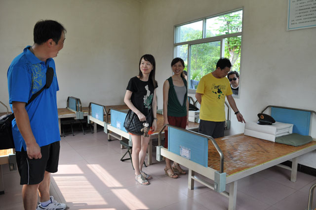 当我们穿过繁育中心门前的草地时,看到这里四周摆放了许多梯架。警犬训练基地刘队长向我们介绍,这就是平时训练警犬的场地。训练科目很多,不同的警犬有不同的训练重点。在训练中,警犬们需要根据训导员的口令、手势顺利地做出动作;当犬做出正确动作后,便会得到训犬员的奖励。由于时间的相处,训犬员和警犬之间往往能建立起心有灵犀的默契和情同兄弟的深厚感情。随后,在刘队长等领导的陪同下,我们还顺道参观了战士们的宿舍。当看到战士们方正平整的被子、整齐划一的洗刷用品、简洁干净的宿舍,我们无不由衷地佩服与感叹。贺南潮馆长当场表示,我们要把警营这严谨、扎实的作风带到我们的工作、生活中去,进一步提升我馆的工作水平。