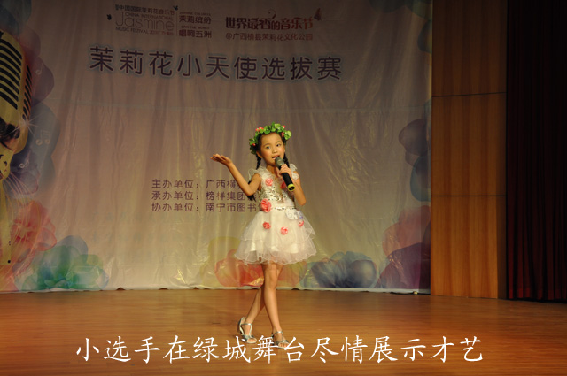2011年8月3日-4日,南宁市2011年“快乐暑期大行动”系列活动之“茉莉花小天使”评选活动在南宁市图书馆多功能厅圆满落下帷幕。该活动由南宁市图书馆与广西横县人民政府共同举办,为即将在中国茉莉花之都——横县举行的第七届中国国际茉莉花音乐节唱响了序曲。