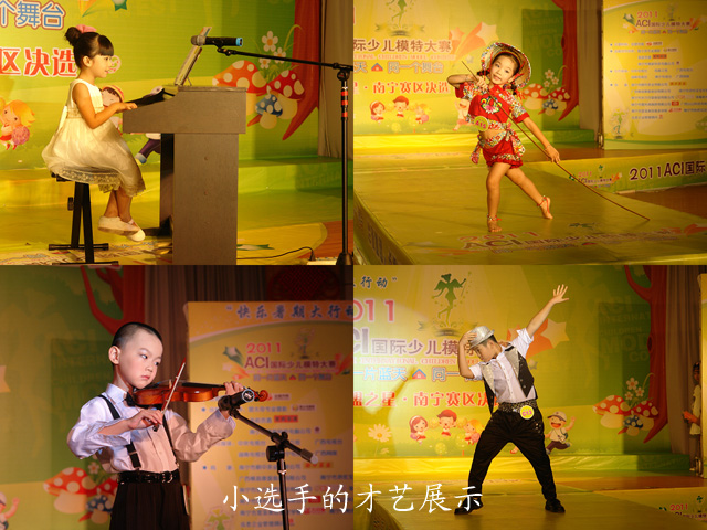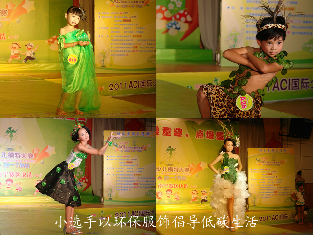 本次比赛的近百名小选手是从500名海选参赛者中精心挑选出来的,经过为期一周的ACI系统强化训练,小选手们的表现都多了几分专业性。当天的比赛十分紧张有序,小选手们通过统一服饰、魅力泳装、休闲服饰、个人才艺、“森林”主题创意环保服饰这五大环节进行了精彩展示。值得一提的是,在“森林”主题低碳环保服饰展示环节中,小选手们充分发挥创意巧思,与父母一起动手用各种废弃物品如购物袋、垃圾袋、旧报纸、干花等做成既精美又环保的服饰,配合设计说明进行走秀,其中许多别出心裁的设计令评委和观众大为赞赏。当天的比赛中,A、B、C每组各有十名选手脱颖而出成功晋级,他们将代表南宁市参加2011年8月20日举行的年度全国总决赛,和来自全国各地的一百多名选手同台竞技、各展风采。