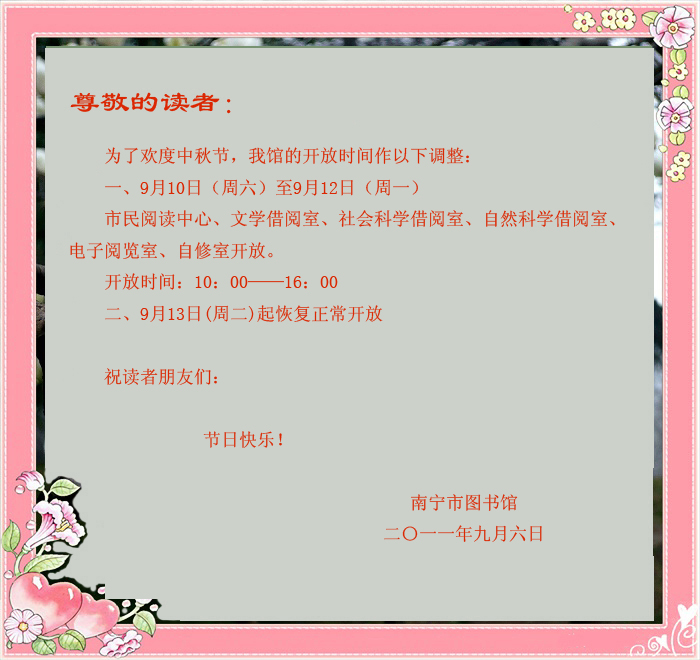 时间:2011年9月6日 作者:南宁市图书馆 来源:南宁市图书馆 浏览:19367